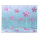 A digital drawing of cute stylised purple flowers with shining red centres. They're peering quizzically at you from the tall grass beside a pool of clear rippling water.