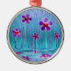 A digital drawing of cute stylised purple flowers with shining red centres. They're peering quizzically at you from the tall grass beside a pool of clear rippling water.