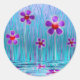A digital drawing of cute stylised purple flowers with shining red centres. They're peering quizzically at you from the tall grass beside a pool of clear rippling water.