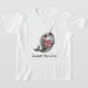 100% cotton so perfect for summer, It is a nicely designed t-shirt, the fabric is soft and the seams finished well, the body of the t shirt has no side seams. I bought a medium size for my two grandsons, aged 9 and 8 it will be slightly big on them but I would rather that than too small
