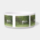 This awesome pet bowl features a beautiful photograph of a gorgeous white horse standing under a tree looking a bit shy.