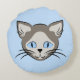 Siamese Blue Eyed Cat Face Graphic Custom Name Round Cushion