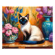 Elegant Siamese Cat And Bouquets in Vases watercolor