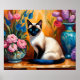 Siamese Cat And Bouquets in Vases watercolor Poster