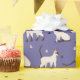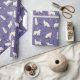 Cute Siamese cats sit and stand among paw prints on a purple background.