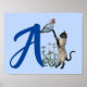 Cute Siamese cat playing with a pretty blue butterfly among pretty white daisy flowers monogram Initial A. This image is available on many products in my gallery. Please visit Smilin' Eyes Treasures to see more flower and nature photography and digital art cards and gifts.
