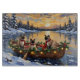 Bring sleek, vocal charm to your holiday season with this stunning Siamese Cat Christmas design! This magical scene features three elegant, blue-eyed Siamese Cats with their distinctive color points, sitting attentively in a cozy wooden boat, gently floating on a serene snowy lake at sunset. The boat is beautifully adorned with glowing Christmas string lights and fragrant pine garlands, while the cats wear festive scarves. They are surrounded by colorful wrapped presents and cheerful holly branches. Soft snowflakes gently fall, and the shimmering reflection of the lights on the water creates a truly magical winter holiday atmosphere. This design is a perfect Christmas gift for any Siamese Cat owner, cat lover, or admirer of festive and beloved short-haired feline art, capturing the serene joy of the season.