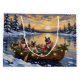 Bring sleek, vocal charm to your holiday season with this stunning Siamese Cat Christmas design! This magical scene features three elegant, blue-eyed Siamese Cats with their distinctive color points, sitting attentively in a cozy wooden boat, gently floating on a serene snowy lake at sunset. The boat is beautifully adorned with glowing Christmas string lights and fragrant pine garlands, while the cats wear festive scarves. They are surrounded by colorful wrapped presents and cheerful holly branches. Soft snowflakes gently fall, and the shimmering reflection of the lights on the water creates a truly magical winter holiday atmosphere. This design is a perfect Christmas gift for any Siamese Cat owner, cat lover, or admirer of festive and beloved short-haired feline art, capturing the serene joy of the season.