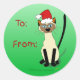 These Christmas gift tag stickers feature the curious look of the Siamese cat personality, with a red Santa hat, on a green background. Use these colourful cartoon cat gift tags on your holiday gifts. The Zazzle design tool allows you to add your name and personalise them before you order.