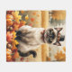 Siamese Cat In Autumn Leaves Thanksgiving Art Fleece Blanket
