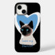 Any Siamese cat owner would love this iPhone case! It features a beautiful art image of a blue eyed siamese cat, with a matching blue and white heart image behind it, and all placed on a black background that really makes the cat image stand out. Change the text to anything you'd like; personalise it with your name if you'd prefer.