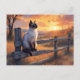 Cat lovers!! Rural Siamese cat sits on a fence at sunrise