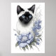 Indulge in the enchanting beauty of this poster, featuring a captivating Siamese cat gracefully nestled among a sea of delicate blue flowers. This poster captures the essence of tranquillity and sophistication, making it the perfect addition to any cat lover’s collection.