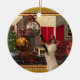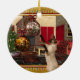 An adorable Siamese cat round Christmas ornament! Ornament features a Siamese cat playing with dangling decorations, a cosy Christmas home background, with glowing holiday lights. A wonderful decorative gift idea for both family and friends, and especially for someone that has a Siamese cat or collects Siamese cat items. For more Siamese cat gift items, cards, and or other cat themed products please visit our store.