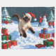 Siamese Cat Running in Snow with Christmas Hat Fleece Blanket