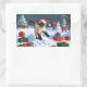 Siamese Cat Running in Snow with Christmas Hat Rectangular Sticker