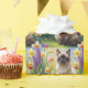 A cheerful Cat sits peacefully on lush green grass, surrounded by colourful spring blooms under a soft blue sky. This digital oil painting captures a serene moment with expressive brushstrokes, warm colours, and a sense of gentle joy.