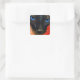 This is a close up painting of a beautiful Siamese cat. He has a very intense and expressive look with a sweet and loving personality. His intense blue eyes are striking against the red orange background and cream coloured whiskers.