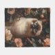 Siamese Cat Surrounded By Blush Pink Flowers Fleece Blanket