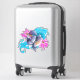 The stick looks amazing. Unfortunately, it would not stick on our suitcase as it was textured. When we found a non-textured (smooth) suitcase, the sticker stuck and looks great. The printing looked awesome.