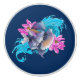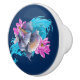 A siamese fighting fish in the water with lotus flowers all drawn in a tattoo style in backdrop of dark blue