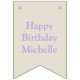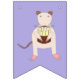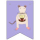 This awesome bunting features a graphic image of a cute Siamese fancy rat with a cream coloured body, pink feet and paws, brown ears, nose and tail and little red eyes. The sweet little rat is holding a tasty Birthday cake in its paws. The cake is a chocolate cake topped with pale yellow frosting and filled with red jam. There are nine candles alight on top of the cake. There is custom text so you can include your own message.