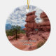 Colorado Ornament souvenir featuring a sunburst of the sun shines at the Siamese Twins in Garden of The Gods with a view of the Rocky Mountains and Pikes Peak in the background. Garden Of The Gods is a National Natural Landmark in Colorado Springs, Colorado.