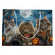 Unleash the spooky spirit with this eerie Halloween design featuring a pack of Cats under a dark, moonlit sky, surrounded by flying bats and glowing pumpkins. Perfect for those who love a touch of frightful fun with their furry friends!