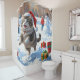 Siberian Cat Running in Snow with Christmas Hat Shower Curtain