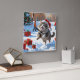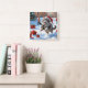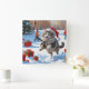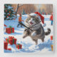 Siberian Cat Running in Snow with Christmas Hat Square Wall Clock