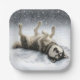 Siberian Huskey Creating a Snow Angel Paper Plate