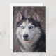 This digital painting depicts a Siberian Husky standing on snow, its fur glistening with frosty highlights as the winter landscape stretches endlessly behind it. The dog’s expressive eyes catch the viewer’s attention.