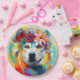 This colourful and whimsical painting captures the playful personality of a Siberian Husky with bold brushstrokes and vibrant hues. It's a perfect piece for dog lovers and art enthusiasts alike, adding a touch of contemporary charm to any room. The rich colour palette and attention to detail make it an eye-catching addition to any collection of pet portraits or animal paintings. Great for Birthday parties.