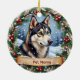 Siberian Husky Christmas Ceramic Ornament