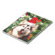 Cute Siberian Husky with Christmas Tree Ornaments Snow Man in background.
