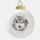 Siberian Husky Christmas Wreath Festive Pup Ceramic Ball Christmas Ornament