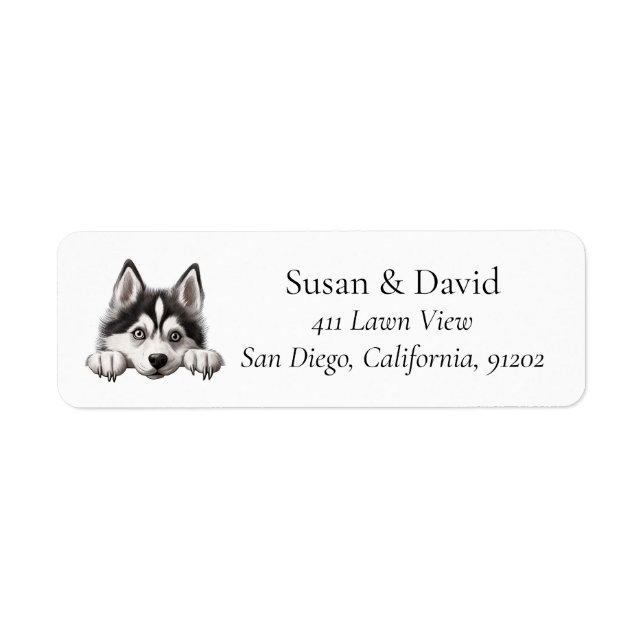 Celebrate the adventurous spirit and striking looks of the Siberian Husky with this personalised address label. Known for their icy blue eyes, thick coat, and energetic personality, this design is ideal for Husky lovers who appreciate this loyal and hardworking breed. Add your name and address on the right for a bold, custom touch.