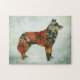 Siberian Husky Dog Floral On Green Jigsaw Puzzle