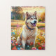 Siberian Husky Dog sitting in a meadow of flowers. Puzzles, planners, notebooks ornaments stockings more with this design in my stores. Lots of pet and scenery designs in my stores. Add this design to other products. Add text.