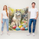 Siberian Husky Dog with Easter Eggs Holiday Fleece Blanket