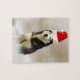 Siberian Husky Dog with Santa Hat in Snow Jigsaw Puzzle
