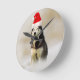 Siberian Husky Dog with Santa Hat in Snow Round Clock