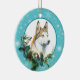 Siberian Husky Evergreen Blue Snowflake Border Ceramic Ornament