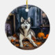 Siberian Husky Pumpkins Halloween Scary Ceramic Ornament