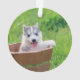 Siberian Husky Puppy in a Pot Ornament