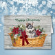 Siberian Husky Puppy in Basket Christmas Card