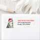 The left side of these return address labels features a beautiful Husky Dog wearing a red and white Santa Claus hat. Gold confetti gives interest to the background. Your custom text is in red and black at the right.