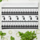 Good quality material. Miniature Husky dog silhouette pictures done in black on white background. Attractive. No printing on this product