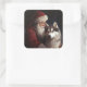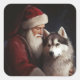 Siberian Husky With Santa Claus Festive Christmas Square Sticker