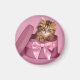 Gorgeous siberian kitten in pink bow hatbox, painted by artist Maryline Cazenave.